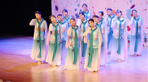 接着,由王虎老师指导的华裳汉服社为大家带来了精心编排的群舞《盛唐夜唱》。她们秉承着弘扬汉服文化,秉承“着我汉家衣裳,兴我礼仪之邦”的社团宗旨,将汉服展示与舞蹈、音乐相结合,让现场的观众们仿佛置身于汉唐盛世之中。