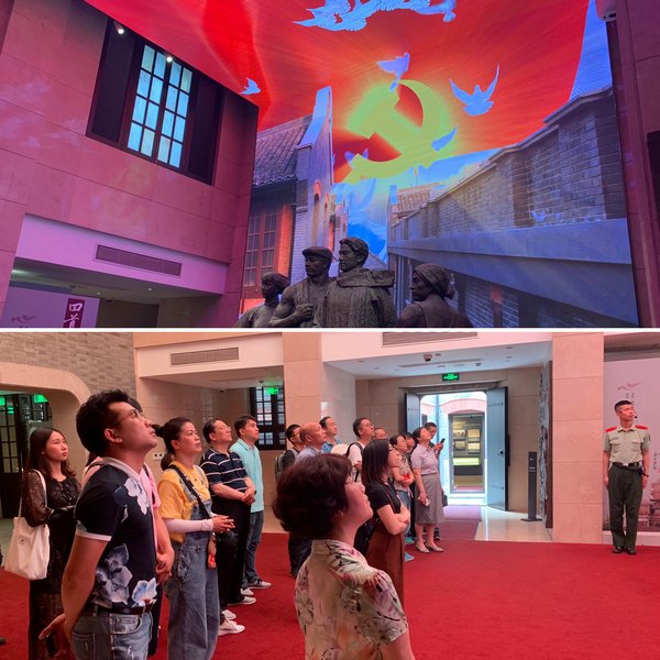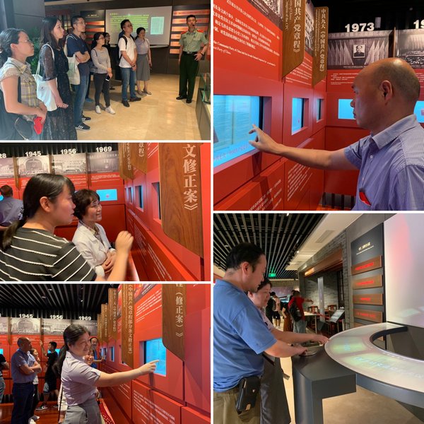 中共二大会址位于上海老成都北路7弄30号。在新中国的伟大变革中,中共二大与中共一大共同完成了党的创建任务,具有极为重要的历史意义。全体党支部成员走进展厅,映入眼帘的是“中国共产党万岁”的一行大字,这是中共二大时期提出的党建口号,凝视着这些,此时此刻的我们依旧备受鼓舞。在讲解员的介绍下,大家认真观看了党史纪录片、陈列展厅里的文件史料。走进党章展厅,首先映入眼帘的就是“党章图书馆”,展厅采用先进的科技,陈列了从1922年到2012年发布的所有党章,通过“透明显示器”,只要在触摸屏上滑动手指,一部部党章电子版本会自动翻开。这样生动又具有教育意义的设计让人印象深刻。紧接着,支部党员们参观了 “党章集锦墙”,分别重温了不同历史时期通过的党章,从第一部到这次党的十九大最新修订的党章,每位党员都认真领会党章修订的历史脉络,从中感悟党的光辉历程。大家通过党章见证了中国共产党发展的历史,同时也深刻感受到了中国共产党奋斗的历史。