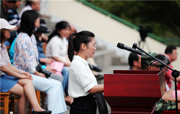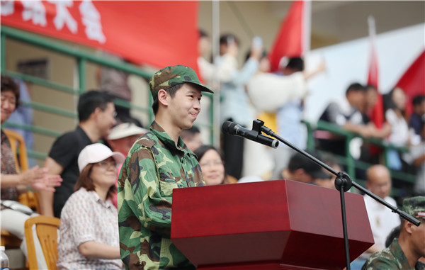航空制造系1951101班的王孜聪同学代表全体新生发言,表达了对教官、老师的感谢。他说军训生活不仅强健了体魄,提高了个人的自律意识,还突破自身的极限,并让大家产生了强烈的团体意识,认识到了“集体荣誉观”的意义和重要性。