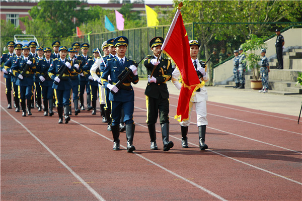 伴随着雄壮的进行曲,各营连会操代表方阵逐一走过主席台,接受检阅。同学们精神抖擞,气宇轩昂,展现了军人的英姿飒爽。