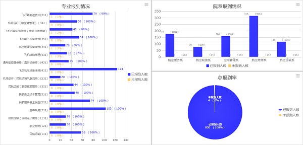 2020年6月13日,我院顺利完成2020级自主招生学生报到工作。本次应报到854人,实际报到849人,报到率为99.41%,其中航空运输系、航空乘务系报到率为100%。