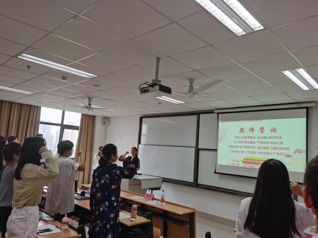 胡亚明院长代表学院讲话,他围绕“安全”二字展开,强调安全是底线,也是“三个敬畏”(敬畏生命、敬畏规章、敬畏职责)的集中体现;牢记安全,就是要树立遵章守纪的规章意识,这也体现了我院文化建设中的安全文化特色。对于专任教师来说,要牢固树立以学生为中心的教育教学思想,扎根三尺讲台立德树人;对于全体教师,尤其是新教师,要戒骄戒躁,淡泊名利。最后,胡院长鼓励新教师们树立积极正确的思想政治观念和教育理念,在培训中努力学习,尽快融入新角色、适应工作岗位,早日成为合格的教育工作者和学生的灵魂工程师,同时也为学院的发展做出自己的贡献。