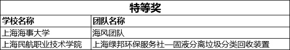 此次大赛,根据文件要求和层层选拔,在我校学生工作处就业指导中心的组织和各部门的大力支持下,共推荐3支队伍参加上海市选拔赛,最终来自航空维修系仇香老师指导的“上海绿邦环保服务社——固液分离垃圾分类回收装置”团队以优异的成绩摘得上海市特等奖,并将代表上海市高职高专组参加“学创杯”国赛。