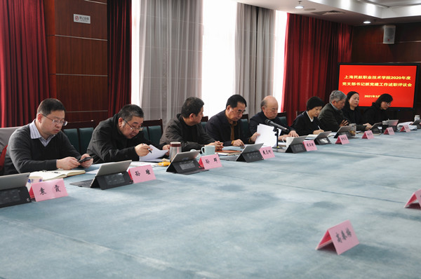 3月24日下午,学院党委在徐汇校区召开2020年度党支部书记抓党建工作述职评议会,现场听取航空运输系党支部、航空乘务系党支部、空港管理系党支部、航空维修系党支部、航空制造系党支部、基础教学部党支部、行政管理党支部等7个直属党支部的书记述职。会议由党委副书记、院长胡亚明主持,党委书记戴志刚作总结讲话,在校的党委委员孙群、章恒龙、孙暄、姚力军出席会议,学院纪委委员、党委组织人事部门相关人员及教育教学系统主要负责人列席会议。