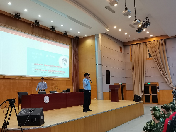 讲座最后张副所长向同学们介绍了校园民警吴惠忠,吴警官是学院的负责民警,可以及时帮助解决校园安全问题。学生工作处也向同学们强调及时保存惠南派出所的快捷报警电话以及吴警官的联系方式,一旦出现安全问题应第一时间与辅导员联系,需要求助警察的及时联系吴警官以及向惠南派出所报案。