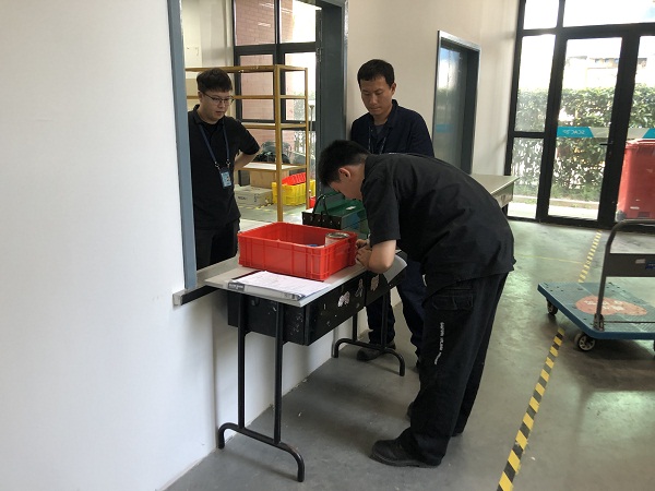评估考试分为上下午各两场进行,每场分配四位考生,航空维修系陈学锋、林振雄、陈炯等共八名授权评估员参加了评估,每位学员都由两位评估员共同进行打分,需两位评估员同时给予“通过”,才能最终评定为评估通过。考试当天,局方监察员李钰来到我院,现场监督了实作评估的开展,评估过程合理有序、组织严谨细致、设施设备符合局方要求,整个评估过程受到了局方的肯定。