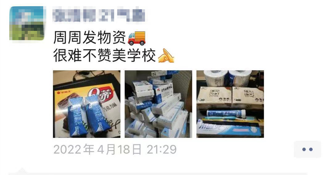 综合新闻 best365官方网站登录入口 > 校园新闻 > 综合新闻 暖心物资频派送 心系学子同抗“疫” 作者:best365官方网站登录入口浏览:时间:2022-04-27 近日,上海民航职院的同学们纷纷在朋友圈“炫富”,从一日三餐、生活用品,到口罩、零食、水果……各类物资惹人“羡慕”。比如这位同学说:“周周发物资,很难不赞美学校”。 原来,校园实施(准)封闭管理以来,学院党委在全力开展疫情防控工作的同时,努力克服物资紧缺、人手紧张、运力不足等诸多现实困难,争取各种资源,全力保障在校学生的基本生活,向学生多次发放慰问物资,积极做好在校学生的人文关怀和心理疏导,被学生称赞“这学校能处”!