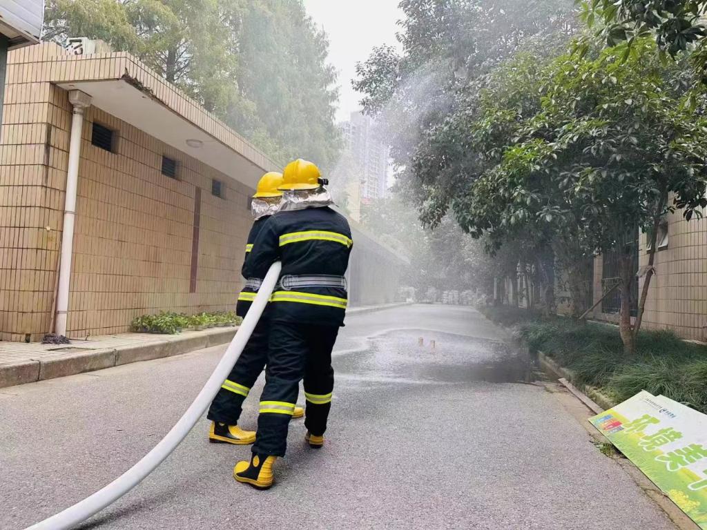 应疫情防控要求,本次“119”校园微型消防站应急演练以室外堆积物发生火情为背景,由确认起火地点、开启声光报警、拨打报警电话、开启疏散广播、紧急疏散、学校微型消防队进场救援等多个环节组成。