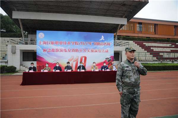 学院党委书记戴志刚、副院长孙暄,党办主任顾青,学工处副处长杨必忠,乘务学院党总支书记吴欣,后勤保卫处长焦成武、副处长张玮森,东安路消防救援站站长殷宗朝出席活动,徐汇校区民航乘务学院690余名学生参与并观摩了活动。