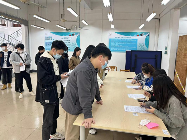 上午8时,海市血液中心杨浦分中心的工作人员已在校门口准备就绪,学生志愿者也在一旁严阵以待,维持秩序。为避免献血现场人员聚集,以二级学院为单位分批献血。在医务人员的指引下,大家认真配合做好填写献血登记表、测量血压、采血检验等准备工作。献血学生提前了解了献血相关知识,并做好了献血准备和个人防护,在经过严格筛选合格后,依次卷起袖子,献出自己的一份爱心。