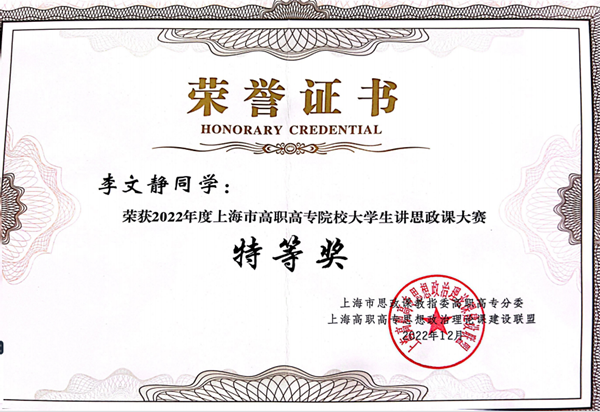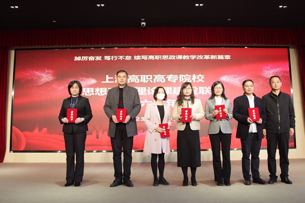 会议还对联盟2022年度各项评优获奖人员进行了表彰。在校领导的高度重视下、教务处等职能部门的指导下,马克思主义学院组织师生精心准备,在2022年度上海市高职高专院校大学生讲思政课及微电影创作大赛中取得佳绩。其中李文静同学荣获讲思政课大赛特等奖,程章慧、程继续同学荣获一等奖,陈心怡同学荣获二等奖,鄢子怡同学荣获三等奖,刘思琪老师荣获优秀指导教师,我院获评优秀组织奖;在思想政治理论课建设工作先进个人评比中,周琦老师荣获“教学骨干”荣誉称号;在思想政治理论教育优秀论文评比中,周侠老师荣获二等奖。