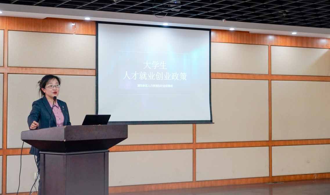 仪式结束后,赵云瑞为全体参训学员作了培训第一讲,针对浦东新区大学生人才就业创业政策从人才、就业、创业、培训、见习、求职等方面做了详细解读。