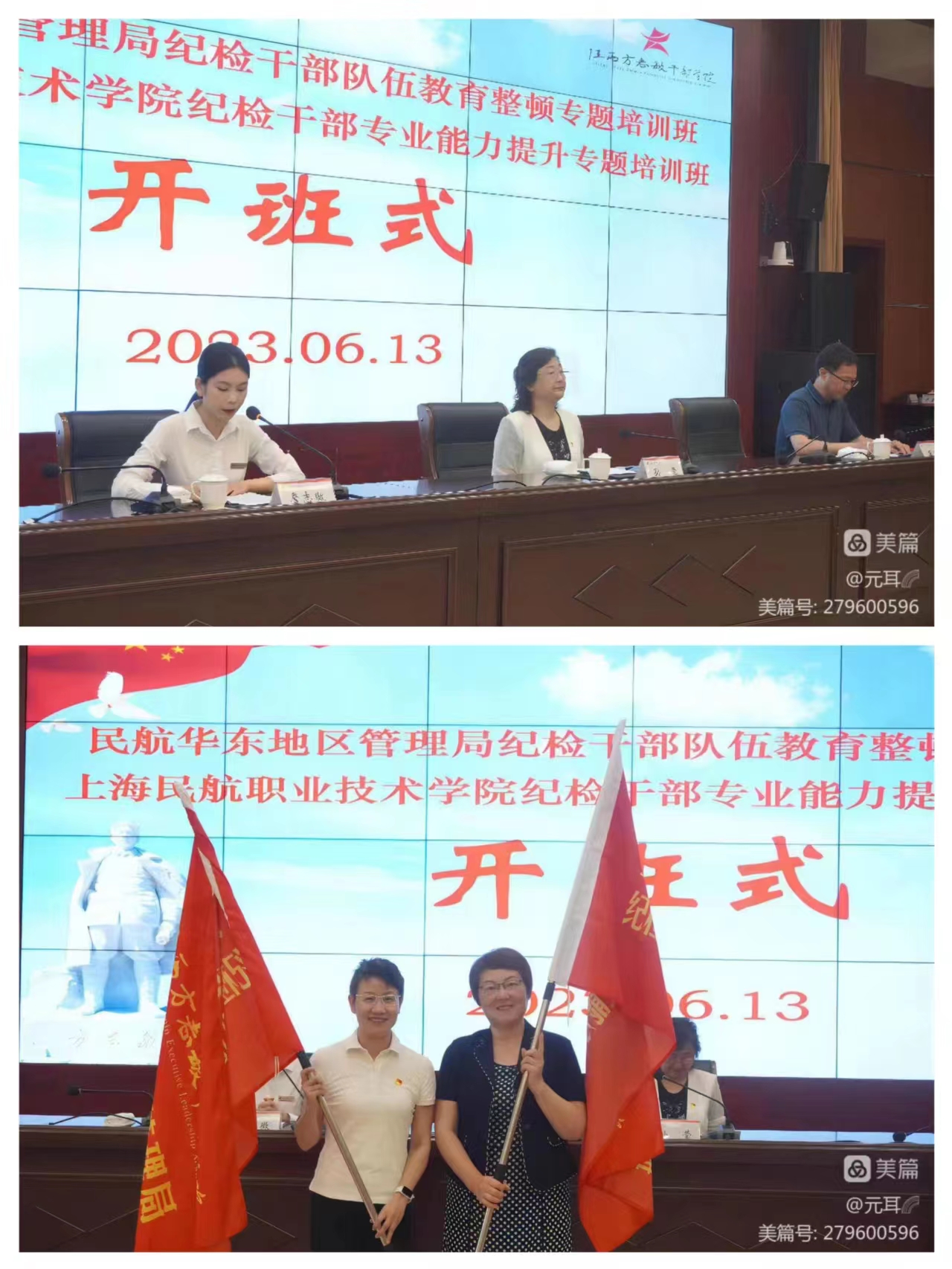 开班仪式上,民航华东地区管理局党委副书记、纪委书记孙莹作动员讲话,江西方志敏干部学院副院长周国弋致欢迎词并向学员代表授予了班旗。