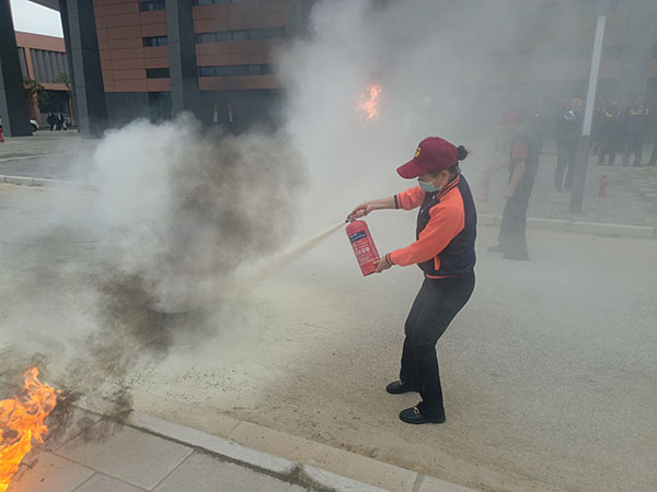 随后,学院后保处黄福磊用通俗易懂的语言阐释了火灾的特点和危险性,向食堂、物业、保安等一线工作人员重点讲解了日常防火常识以及发生火灾时逃生技能,现场示范灭火毯灭火和灭火器灭火的正确使用方法。后保处并组织开展了灭火实操演练,帮助食堂、物业、保安等一线工作人员从实践中真正掌握灭火器等正确的使用方法。