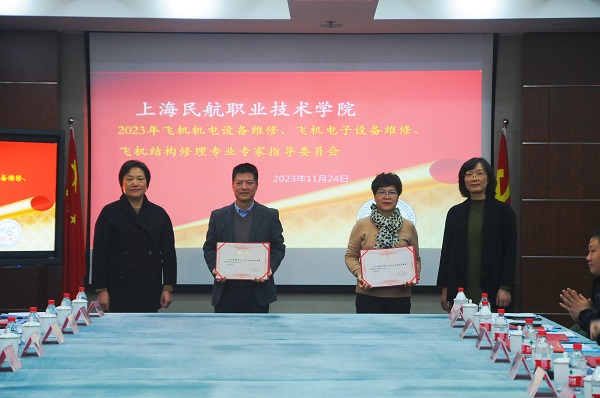 会上,民航维修学院王志豪副院长向专家们简要介绍了我院基本情况,特别对民航维修学院专业设置、师资建设、课程建设等进行了重点介绍。王立新、杨征两位副院长为出席会议的地面、通航、无人机三个专业的专家颁发聘书;潘云、倪轶群两位处长为出席会议的机电、电子、结构三个专业的专家颁发聘书。