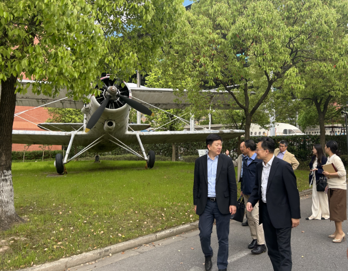 会后,学院领导陪同中国民航科普基金会一行参观徐汇校区相关实训场地及设施设备。