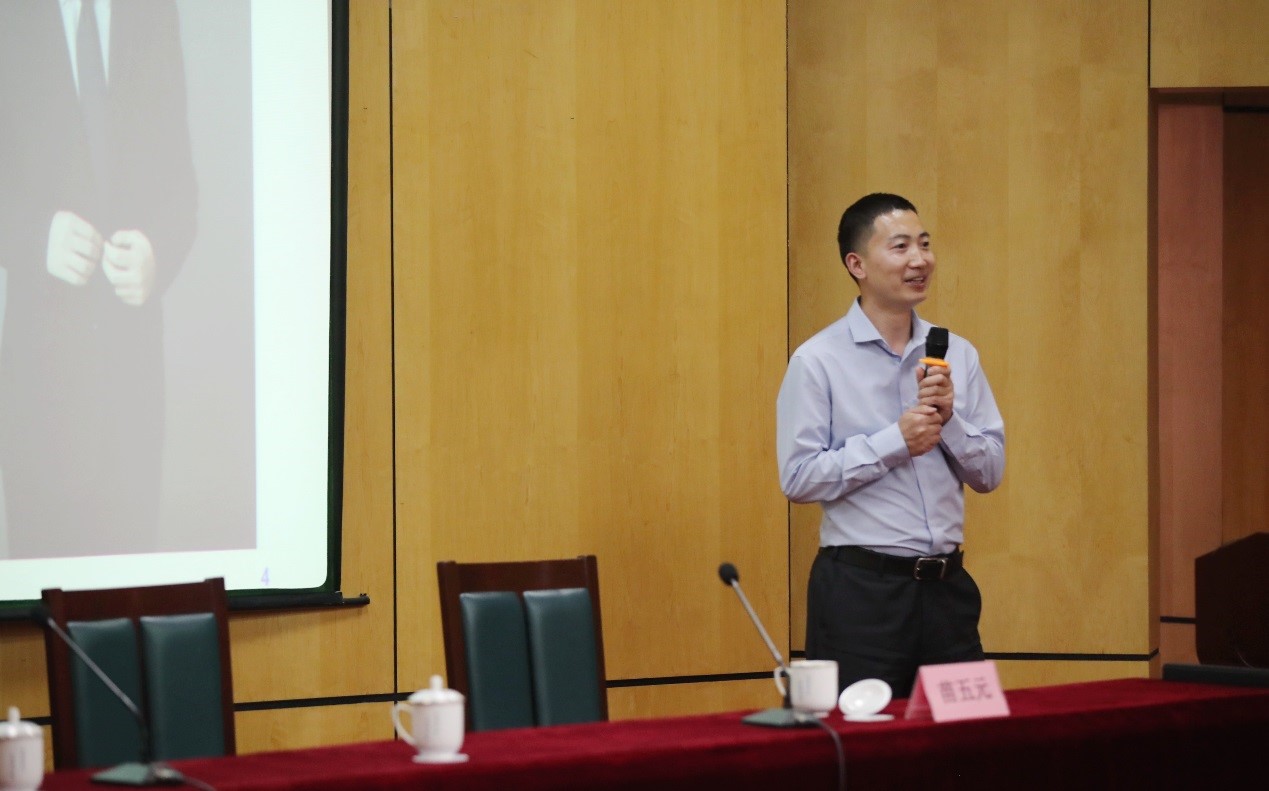 民航乘务学院学科带头人吴江华老师介绍了讲座嘉宾的相关背景信息。随后,春秋航空股份有限公司培训中心总经理苗五元为师生们作了题为“争做‘斜杠青年’——致上海民航学院空中乘务专业师生”的主题演讲。该讲座共分四个部分,分别为关于我自己、民航、职业、工作与生活。为了做好此次讲座,苗总精心准备,他从自身的爱好和特长出发,拉近与听众之间的距离。作为一名民航人,他不仅是公司的管理者,高级经济师,也是国际一级人力资源管理师兼美国项目管理协会PMP经理;同时也是一位跑步爱好者和阅读爱好者。通过自己锻炼和读书的故事,鼓励同学们在增强体质的同时,提升知识涵义,为跨入民航业做好身心准备。