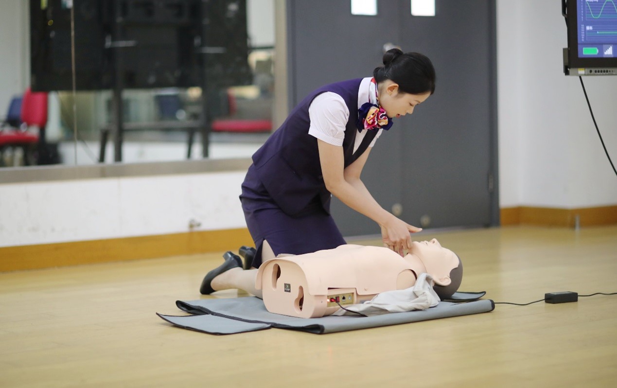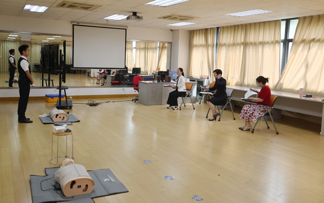项目五为客舱急救技能CPR,旨在考核选手在客舱中实施医疗急救的基本技能,内容包括单人心肺复苏项目。通过选手的动手能力,加强对“敬畏生命”的深刻理解,懂得“生命至上”的人文关怀。