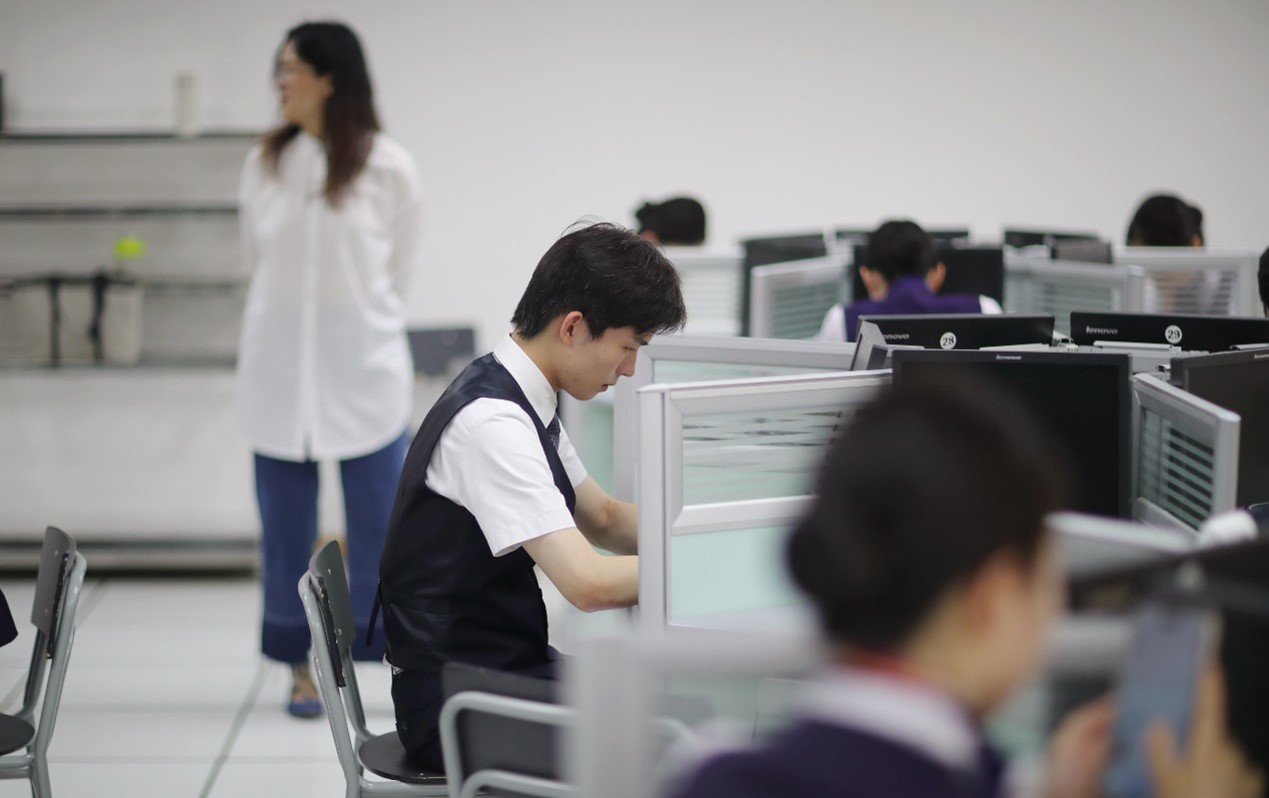 项目一为民航理论知识,旨在考查选手对国家职业技能鉴定培训教材《民航乘务员》一书中所必需具备的基本常识和专业模块内容的理解,可以为乘务员工作打下坚实的理论基础。选手需要在30分钟完成学习通在线100道试题的答题,达到正确率和时效率的完美统一。
