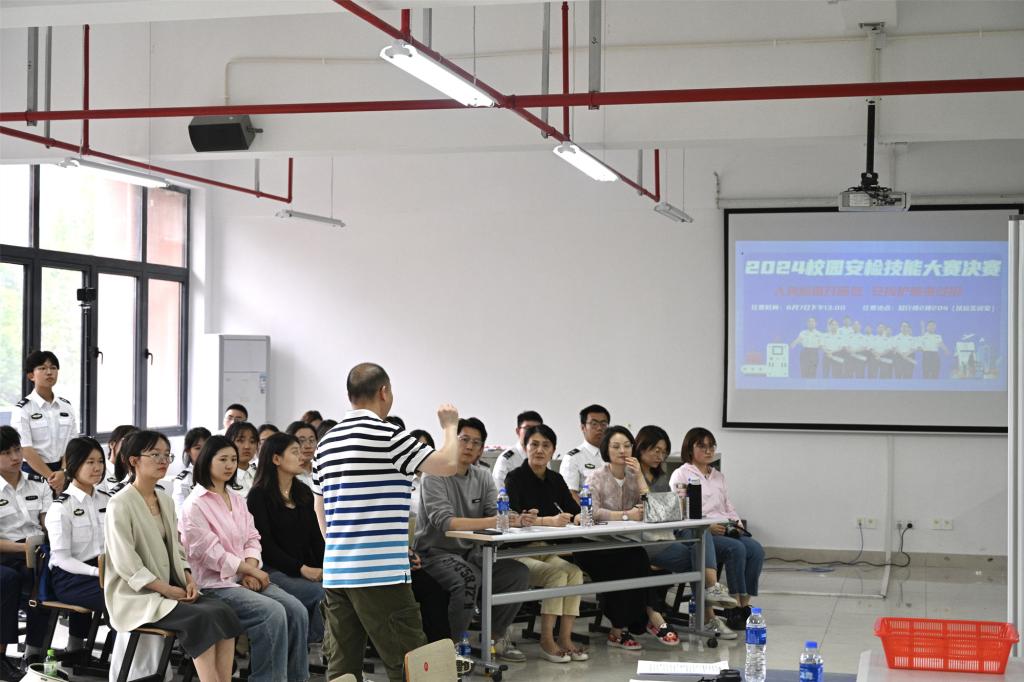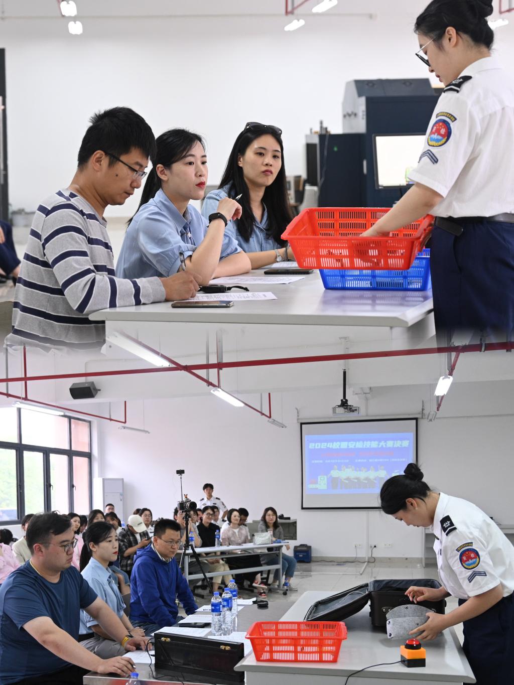 决赛的两个比赛项目分别是人身检查和看图开包,由吴媛、王竹源、邵咏亮、张轶伦、艾治余老师担任裁判,姚静祺、徐强老师担任核分员。比赛规则和难度参考了行业全国大赛,对选手们而言是个不小的挑战。