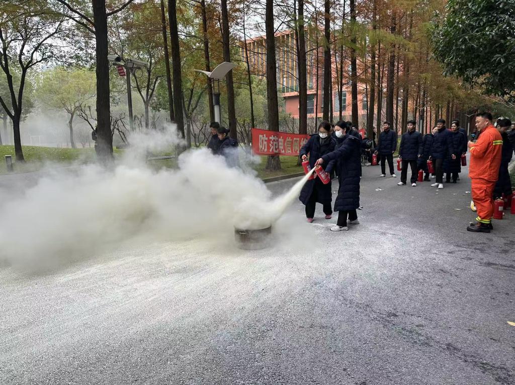 四是灭火器灭火展示:保安应急队员演示了不同类型灭火器的正确使用方法和适用场景,加深了师生对初期火灾扑救的认识。