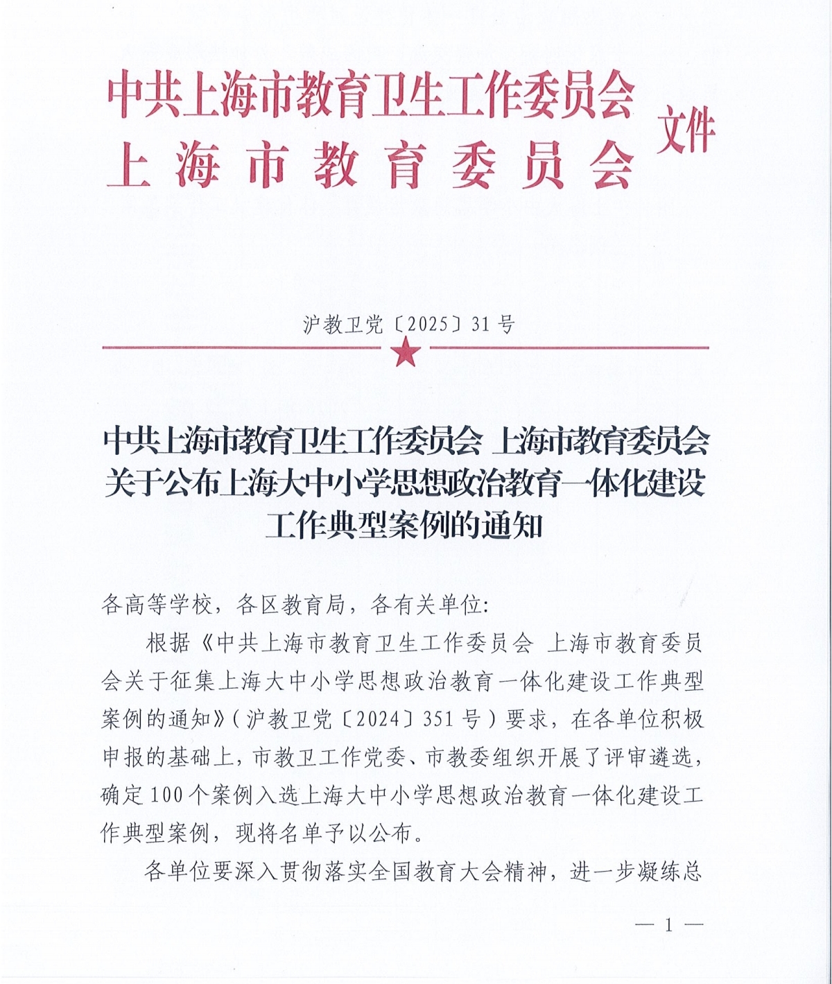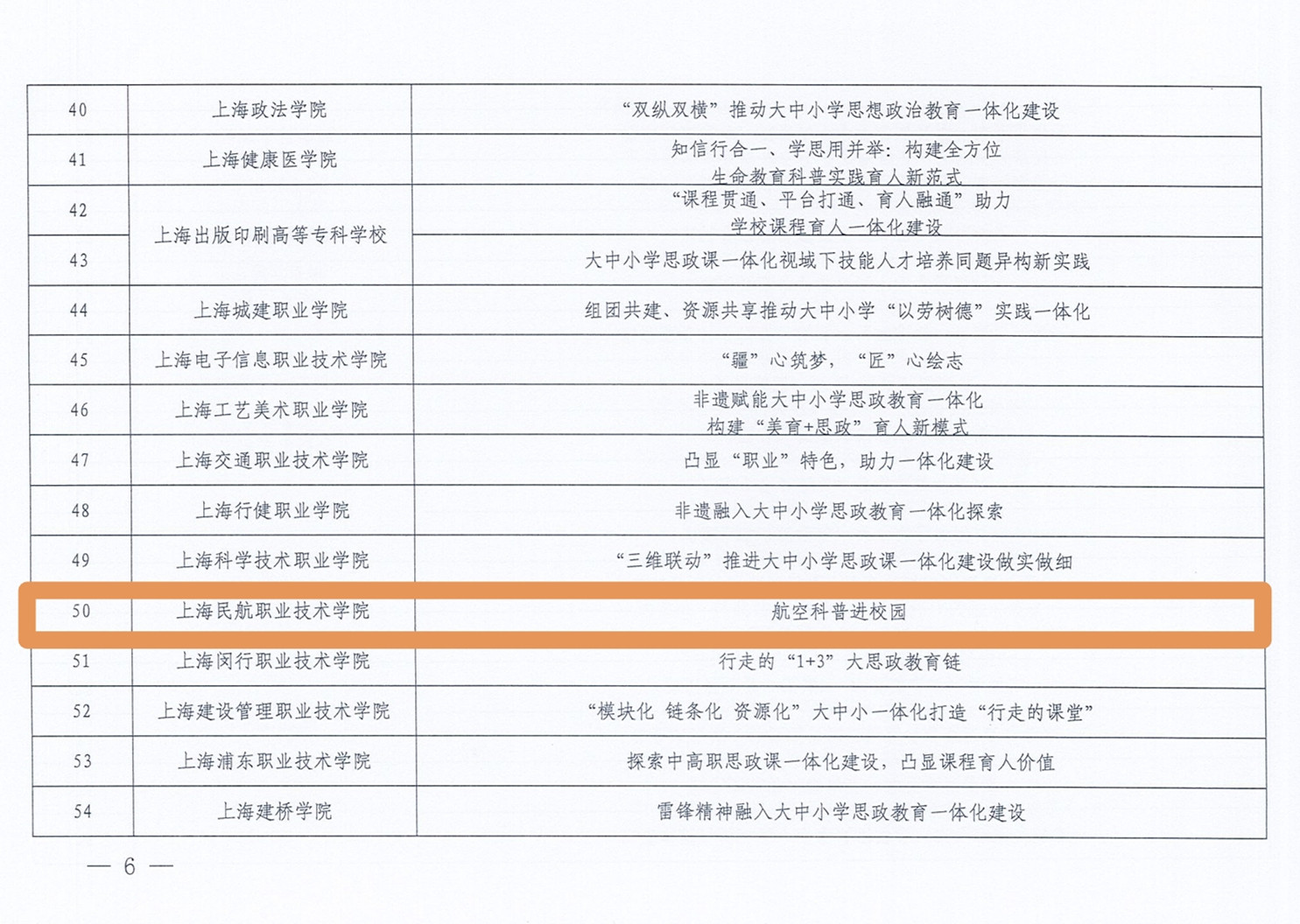 近日,上海市教卫工作党委、上海市教委公布了上海大中小学思想政治教育一体化建设工作典型案例入选名单。我院案例《航空科普进校园》成功入选。