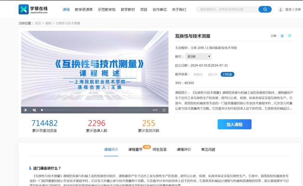 《乘务英语听说》作为我院空中乘务专业开设的一门专业必修课程,充分对接了行业标准、岗位需求,课程建设也得到了学院领导与春秋航空的大力支持,2024年,《乘务英语听说》精品课程开发团队与春秋航空培训中心等部门负责人就校企共建开发《乘务英语听说》精品课程进行深入探讨。为了更好地达成课程目标,在线开放课程建设符合线上线下混合式教学的需求,课程团队教师反复打磨课程框架,重构课程内容、开发课程资源、拍摄课程视频和动画,设计多元化的线上线下混合式教学课程评价考核方案,可满足学生自主学习、SPOC 学习、线上线下混合式教学等多种学习模式。目前课程已运行两期,学习效果好,学习资源利用率高,学生对课程评价高。