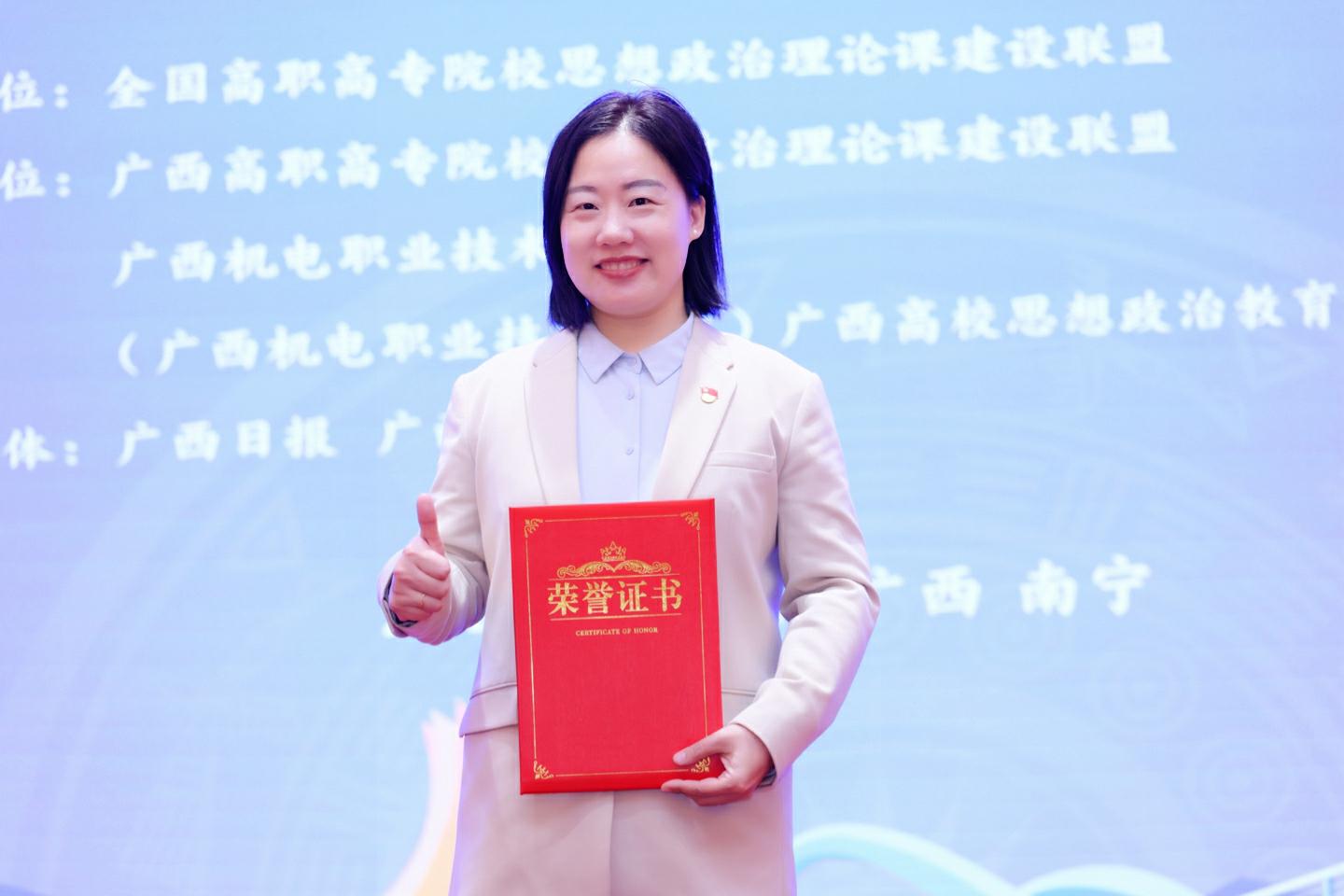 3月29日,2025年第一场全国高职院校思政课“萌新磨课·骨干练兵”教学展示活动在广西南宁隆重举行。我院马克思主义学院周文静老师在此次活动中荣获“骨干练兵”组一等奖,展现了学院思政课教师的卓越风采。
