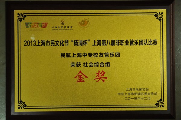 11月30日民航上海中专校友管乐团在上海市民文化节“杨浦杯”第八届非职业管乐团队展演中排名榜首。应上海音乐家协会管乐专业委员会的邀请,管乐团于2014年1月1日参加了在上海音乐学院贺绿汀音乐厅举办的“2014年上海...
