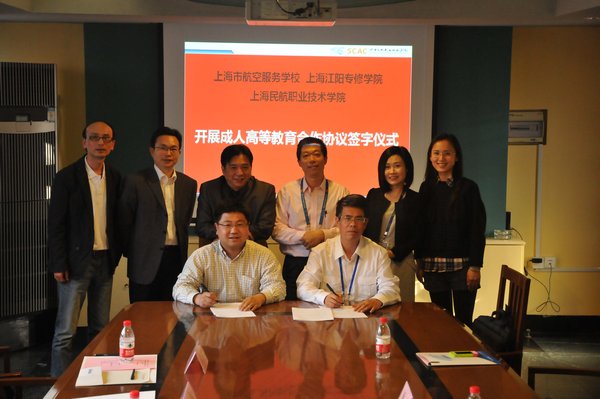 为迅速扩大学院成人学历教育规模,5月8日下午,我校与上海市航空服务学校、上海江阳专修学院合作开展成人高等教育签约仪式在学院第二会议室举行了。出席签约仪式的有上海市航空服务学校陈耀校长、招毕办副主任黄志明...