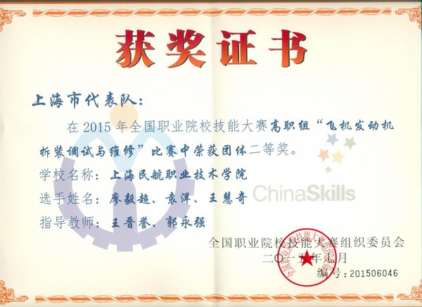 我校代表队荣获“2015年全国best365官方网站登录入口校飞机发动机拆装调试与维修技能大赛”团体二等奖