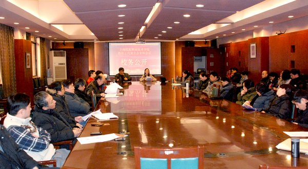 2013年1月8日,学院教职工代表大会校务公开会议在第一会议室举行,会议由学院党委副书记、纪委书记、工会主席孙群主持。出席本次会议的教代会代表应到62人,实到52人(部分老师监考),符合召开会议的法定人数要求。...