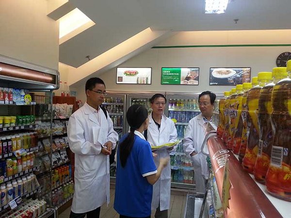 9月15日,由上海市学校后勤协会餐饮专委会沈建平主任带队的2015年上海高校食品安全秋季专项督查组一行9人冒雨莅临我校,对我校食品安全进行了全面仔细的检查。总务处焦成武、陆立鸿及各承包经营公司相关人员陪同检查...