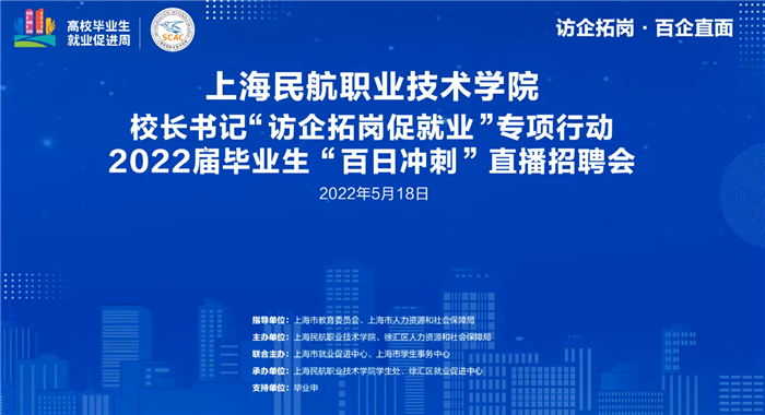 5月18日下午,在上海市教育委会、上海市人力资源和社会保障局的指导下,我院与上海市学生事务中心、上海市就业促进中心、徐汇区人力资源和社会保障局共同举办了书记校长“访企拓岗促就业”专项行动暨2022届毕业生“百日冲刺”直播带岗招聘会。此次活动由2022届毕业生就业工作推进会和网络直播带岗招聘会两部分组成。上海市学生事务中心副主任周红星和上海市就业促进中心副主任沈浩、徐汇区人力资源和社会保障局副局长王戎山分别...