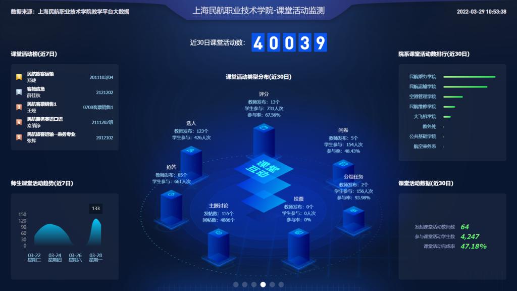 根据疫情防控要求,我院教学活动自3月14日起全面转为网上教学。本学期共开设课程208门,其中考试课程74门,整周实训课程37门,教学班946个。全院共有323位教师承担授课任务,共有5679名学生参加网上学习。此次网上教学的课程视频资源主要分布在“停课不停学”、“超星学习通”及“智慧职教”等学习平台,任课教师分别通过微信、QQ、腾讯会议等平台与学生进行形式多样的教学互动。各二级学院根据各自实际情况,认真组织网上教学....