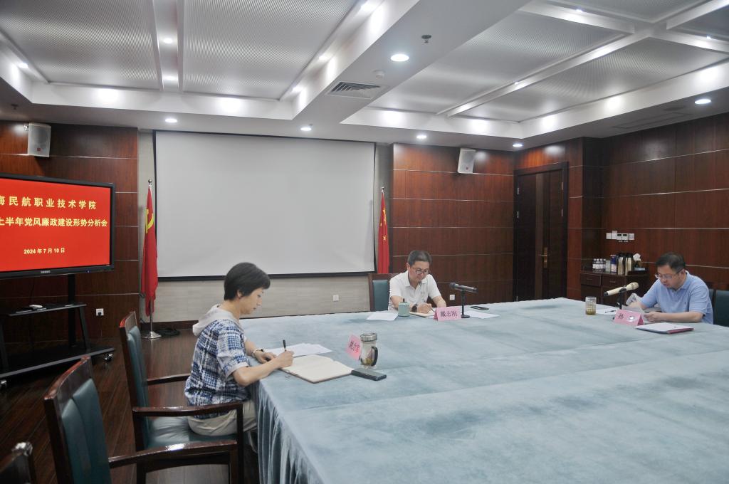 为深入贯彻落实习近平总书记关于全面从严治党和党风廉政建设的重要论述,坚定不移推进全面从严治党向纵深发展,7月10日下午,学院党委采用扩大会议形式召开2024年上半年党风廉政建设形势分析会。会议由党委书记戴志刚主持,在校的学院党委领导班子成员、各二级党组织书记,各二级机构处级领导干部参加会议。会上,党委委员、副院长孙暄传达学习民航局党组书记、局长宋志勇在民航系统党纪学习教育警示教育会上的讲话,通报了民航...