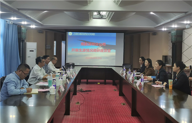 10月20日下午,南航深圳分公司地服部经理李天华、人力资源部招聘主管郭璐、地服培训主管、招聘面试官王维、张忆宁一行4人来到我院浦东校区围绕校企合作开展生源情况调研座谈,我院副院长杨征、航空运输系主任王继华、航空乘务系主任孙军、教务处副处长徐岚以及学生工作处副处长杨必忠参加座谈。杨征副院长首先对南航深圳分公司一行的到来表示欢迎,随后就学院发展历程、专业设置、招生规模、就业去向进行介绍,提出在人才招聘和...