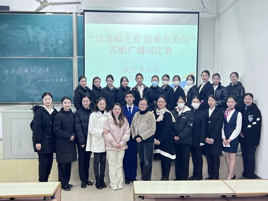 为丰富航空乘务系学子的课余文化生活,提高我系学生的英语口语水平以及语言表达能力,营造更好的互助学习的积极氛围,12月1日下午 ,航空乘务系在浦东校区北2104举行了“以客舱之音 展乘务美韵”客舱广播词大赛。本次活动邀请了航空乘务系孙庆芳老师、吴江华老师及航空维修系明卉老师担任评委。“台上一分钟,台下十年功”, 参赛选手在本次比赛中主要进行三个部分的展示。首先,选手进行三十秒左右的英文自我介绍;其次,以抽....