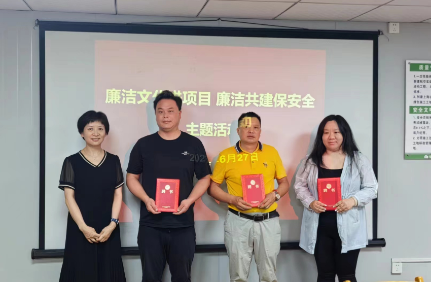 为深入贯彻落实党的二十大精神及二十届中央纪委二次全会精神,推动廉洁文化建设在学院浦东校区改扩建工程项目建设中落地见效,6月27日上午,学院纪委在浦东校区改扩建工程项目部开展了“廉洁文化进项目 廉洁共建保安全”主题活动。学院党委委员、副院长孙暄,党委委员、纪委书记姚力军出席活动,后勤保卫处处长王继华及后勤保卫处负责工程建设的相关人员、上海绿地建设(集团)有限公司代表、上海智通建设发展股份有限公司代表以...