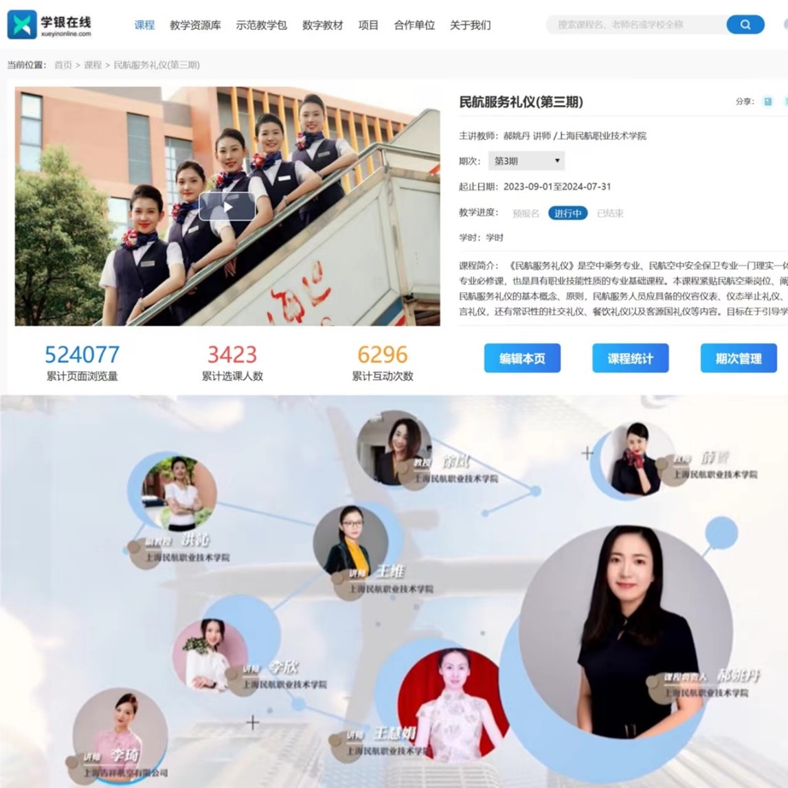 近日,上海市教育委员会公布了《2023年度上海高等职业教育市级精品在线开放课程立项名单》,经学院申报、专家评审和网上公示等程序,民航乘务学院航空乘务教研室郝姚丹老师作为课程负责人,主持建设的《民航服务礼仪》课程荣获2023年度市级精品在线开放课程立项。《民航服务礼仪》课程是我院空中乘务、民航空中安全保卫专业的一门专业必修课程。为了充分对接行业标准、岗位需求,课程建设得到了学院领导与吉祥航空股份....